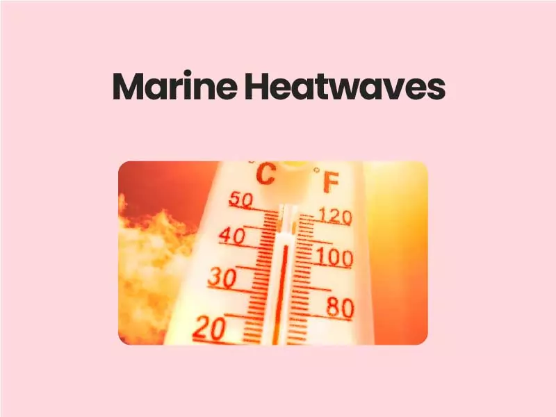 Marine heatwaves are periods of extremely high temperatures in the ocean.These events are linked to coral bleaching, seagrass destruction, and loss of kelp forests, affecting the fisheries sector adversely.